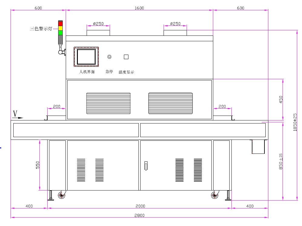 1、UV灯功率:12kw*5支(UV卤素灯)