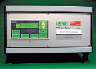 2006年11月8日在慕尼黑举行的“ Fogra UV印刷用户论坛” 上展出了一种新的测试装置。与Ushio合作开发的这种UV固化测试仪是为了检查UV油墨(但不是UV上光油!)是否已经在纸张和盒用纸板上彻底固化。在印刷完成的印张上面放置一张接触印相纸并插入测试仪中,然后承受一个预先确定的压力和温度。测试结束时粘在接触印相纸上的油墨表明固化不完全;如果接触印相纸是干净的,固化就是完全的。